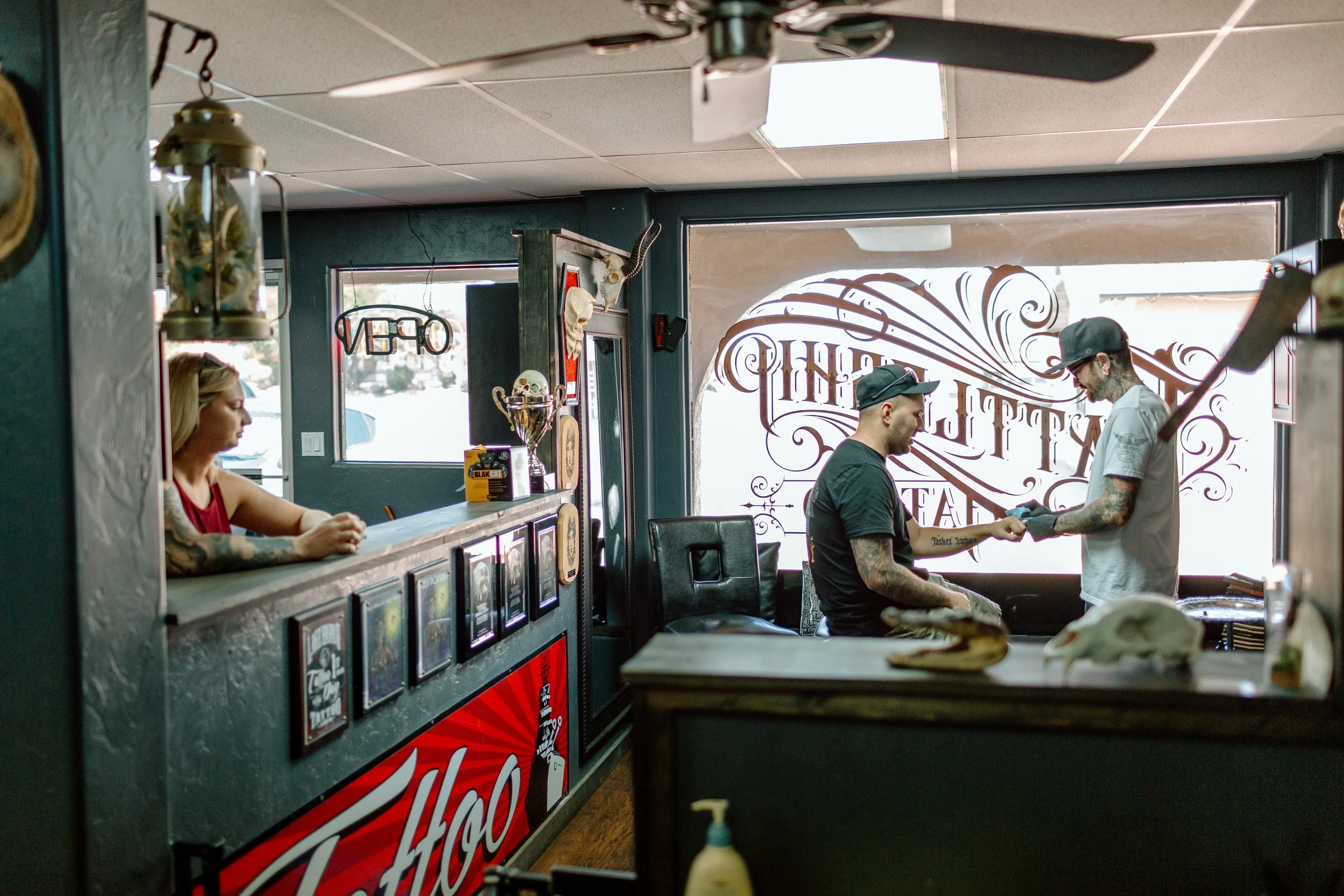 Their elopement coverage actually began the day before their elopement, when I met them at Battleship Tattoo Shop in Sierra Vista. They each got many tattoos there during their Army days, and wanted to go back to get tattoos of each other’s initials in lieu of rings. Personally, I am completely obsessed with this nontraditional decision. The tattoos looked amazing in their photos as well, since they were so fresh and sharp. (Maybe scroll past these if you really don’t like needles!)